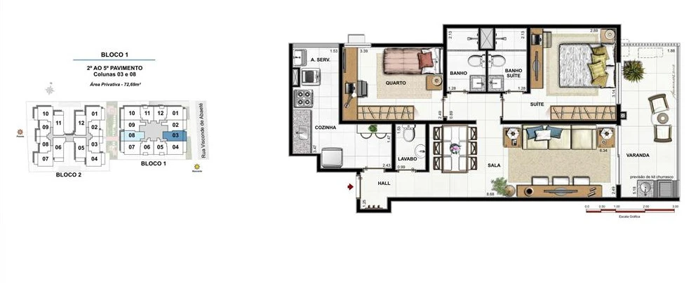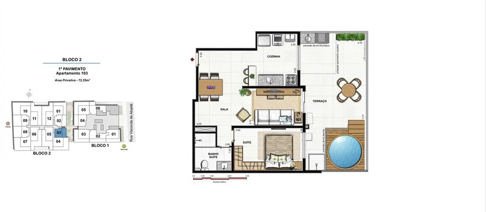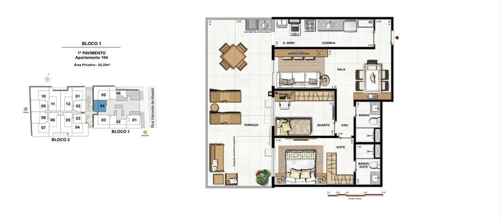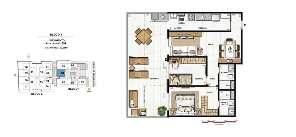 Apartamento térreo de 3 quartos com 92m² até 133m²;